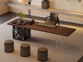 上铭轩 极简 50MM实木多层板+外贴天然木皮面板(深胡桃/)+550*600实木多层板储物柜+外贴岩板(/宝格丽黑/)可置放饮水桶和废水桶+双80MM宽石头纹亚克力脚架+全自动智能抽水茶艺炉+赠臻品茶具 岛台 茶台