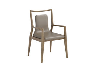 上铭轩 极简 天然白蜡木+深胡桃/浅胡桃/开放黑椅架+灰色超纤皮革软包 茶椅
