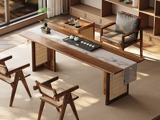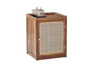 上铭轩 极简 天然南美胡桃木+天然南美胡桃木架子+藤编材质 岛台 茶台