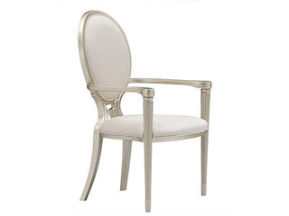艾美侈 美式 进口榉木+超纤皮 香槟银+古典白 有扶手餐椅1把