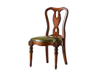 艾美侈 美式 进口榉木+超纤皮 香槟银+古典白 无扶手餐椅1把