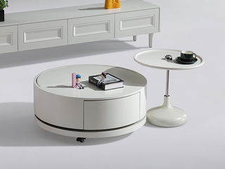 小红书系列 现代简约 桌面:岩板+钢化玻璃脚架:大象灰木皮柜体+转轴+不锈钢底架+大理石边几+钢化玻璃 1.07米组合茶几