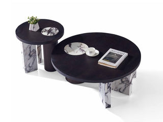 皇朝家居 现代极简 大理石+环保板烤漆 圆形 0.9米0.9M茶几