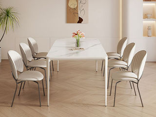云端 奶油风 铝合金材质+纯白色岩板面 白色 1.8米餐桌