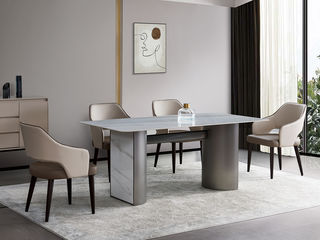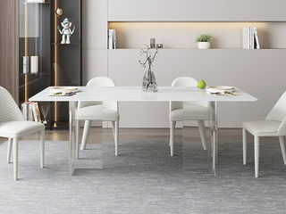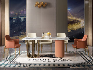 小红书系列 轻奢 桌面:天然石+绒布底板脚架:不锈钢镜面 1.8米餐桌