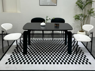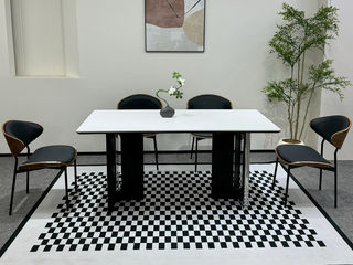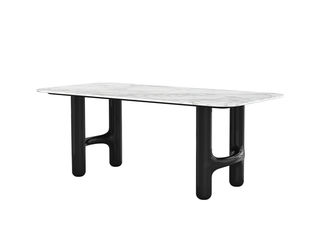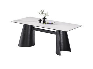 贝斯solo 现代简约 黑亚克力脚架+加厚岩板桌面 方形 1.8米 餐桌