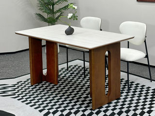 【套餐专享价】每屋优享系列 现代简约 橡胶木+胡桃色木架+全托底板+米白洞石岩板 方形 1.8米 餐桌