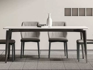 洛萨 现代 玲枫白大理石+碳素钢底架亮光钢琴烤漆 1.8米 长餐桌