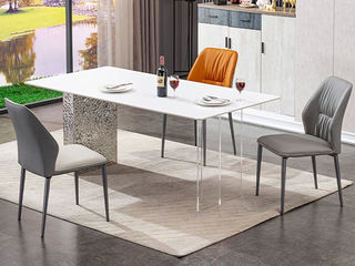 小红书系列 极简 天然大理石+亚克力+中纤板+实木 1.8米餐桌