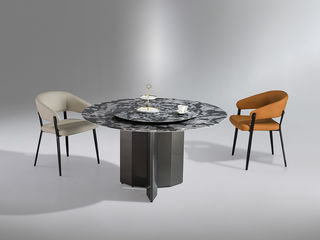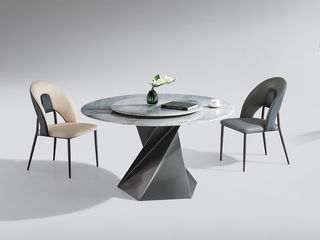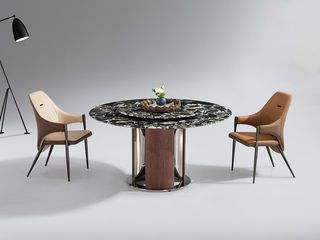 小红书系列 极简 毕加索大理石+碳素钢底架烤漆+不锈钢 1.35米 圆餐桌