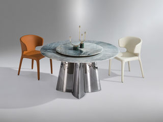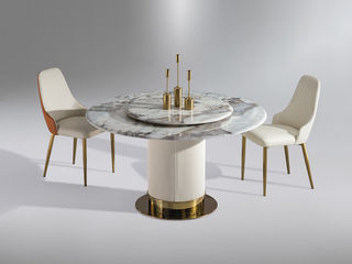梵纳意简 极简 轻奢 电镀不锈钢+贴纸大理石+实木多层板 1.35米餐桌(含转盘)