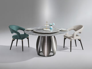 小红书系列 轻奢 桌面:彩晶石+底板脚架:不锈钢镜面【配转盘】 1.35米餐桌