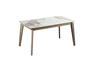梵纳意简 极简 电镀不锈钢+贴纸大理石+实木多层板 1.4米餐桌