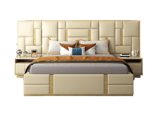 小红书系列 现代简约 实木框架+高回弹海绵+铜色不锈钢五金+仿真皮+仿皮 1.8米床