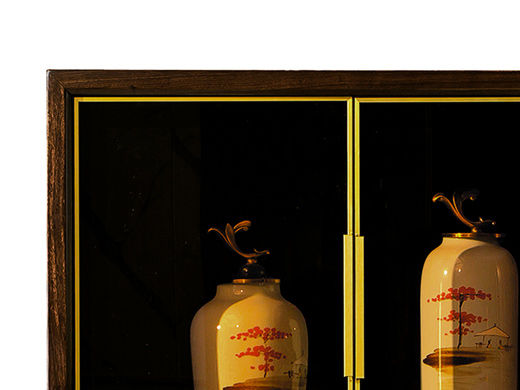 美檀家居 新中式 进口黑檀木+多层实木板+电镀五金+钢化玻璃 黑檀色 高柜装饰柜
