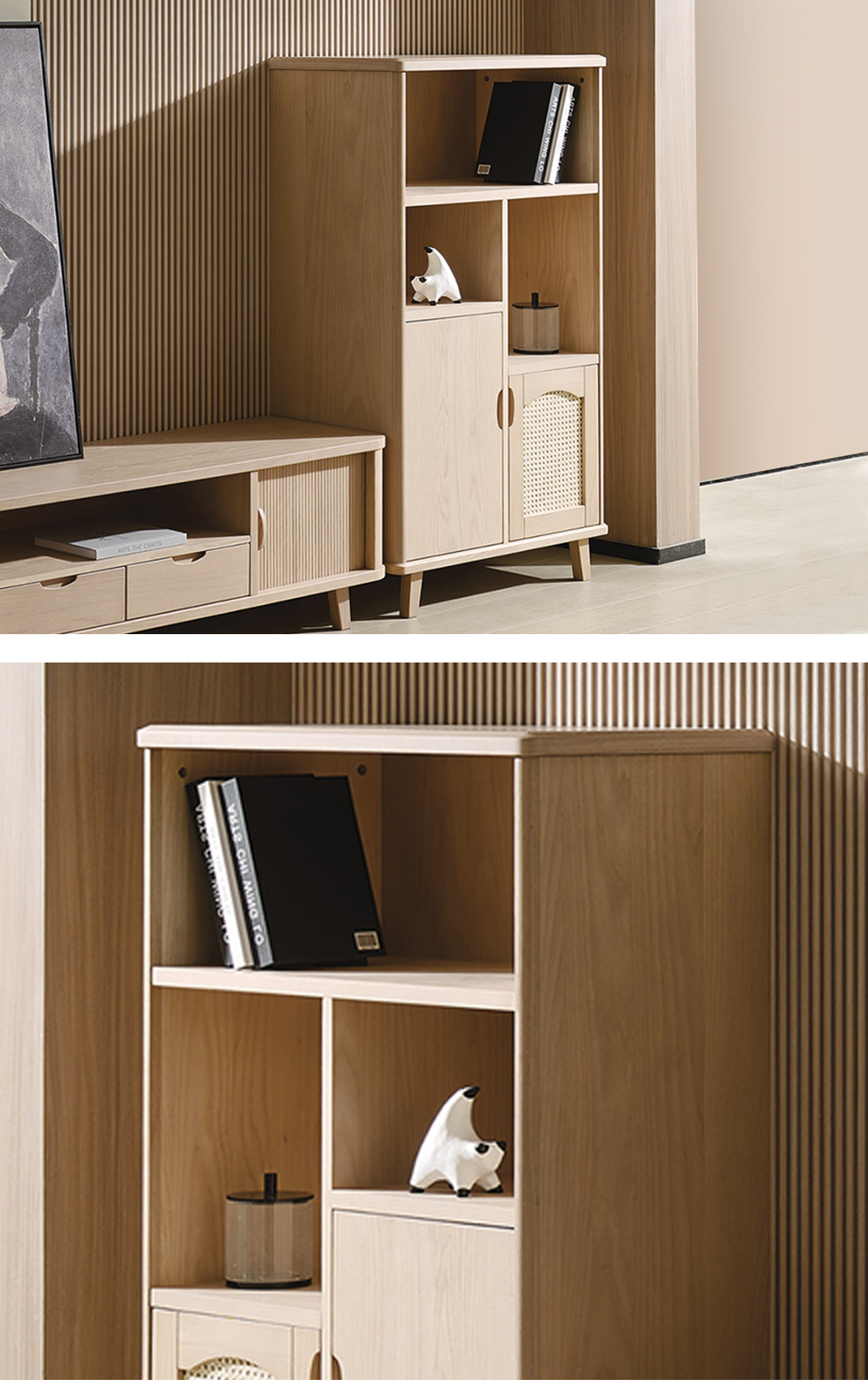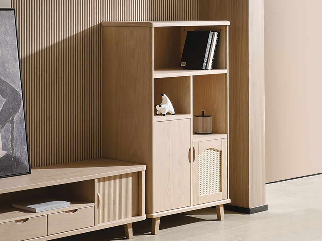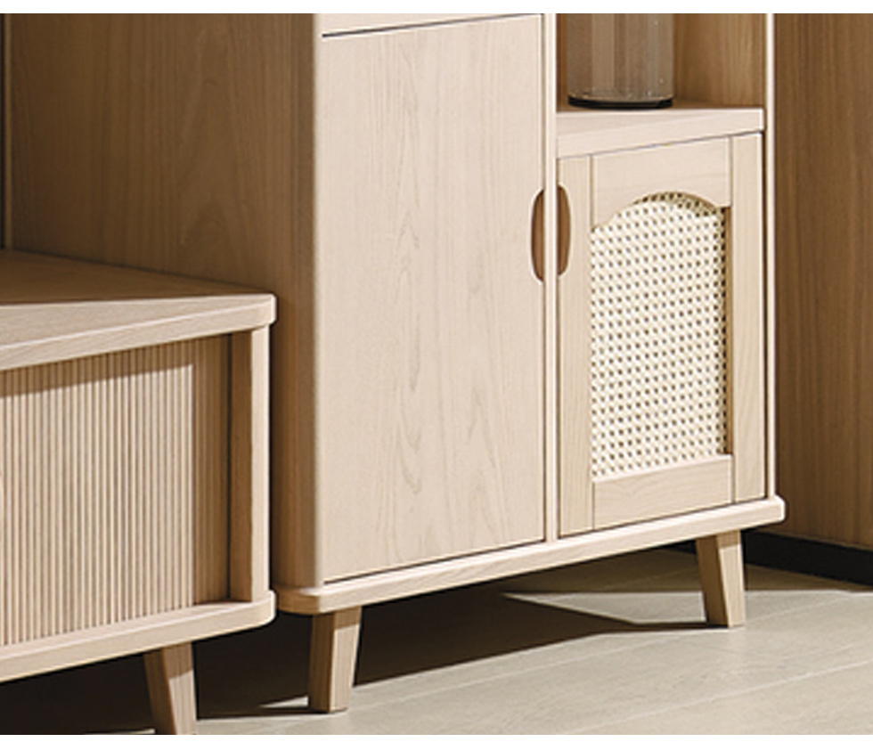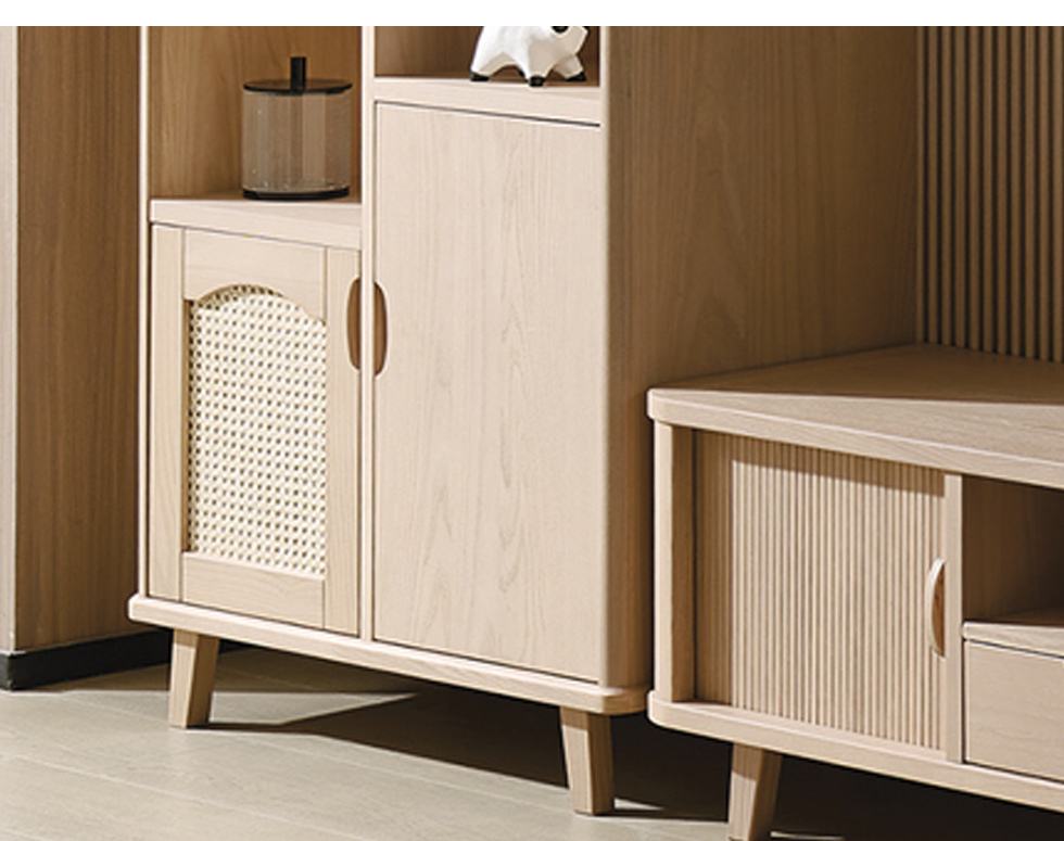 洛尔 中古风 现代实木 进口原木+橡胶木+贴皮 麦卡色 电视柜高柜