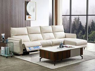 左右家居 现代简约 接触面头层牛皮 进口落叶松实木框架+蛇形弹簧系统+水性胶 高密度海绵 电动功能2.87米沙发0靠墙