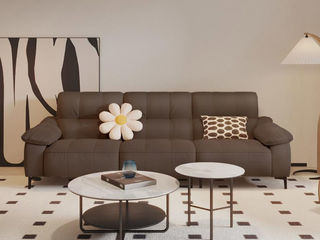 左右家居 现代简约 接触面头层牛皮 进口落叶松实木框架+蛇形弹簧系统+水性胶 高密度海绵 2.82米沙发