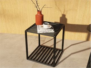 Milos米洛斯 极简 陶瓷岩板 不锈钢黑拉丝框架 0.47米边几