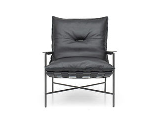 贝斯solo 设计师 网红 极简 五金底框+全皮+马鞍革 休闲椅