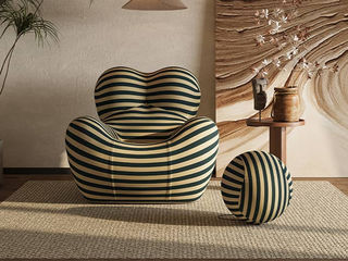 贝斯solo 设计师 网红 极简 水墨画黑白纹路貂绒布料 休闲椅