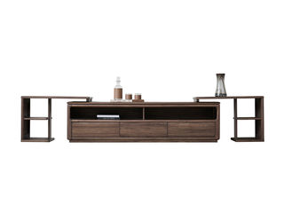 匠心 中式 榄仁木+实木多层板 拉伸电视柜(含一对搭架)(未开电源孔)