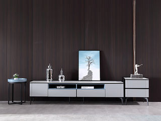 B系优选 现代简约 中纤板(MDF)烤漆+岩板台面6mm+碳素钢脚架 意大利灰(不含边柜) 2米电视柜(未开电源孔)