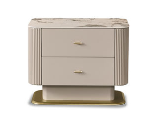 拜洛迪 轻奢 潘多拉奢石岩板面 雕刻工艺线条 实木抽屉贴绒布 浅卡其色 0.55米方形角几
