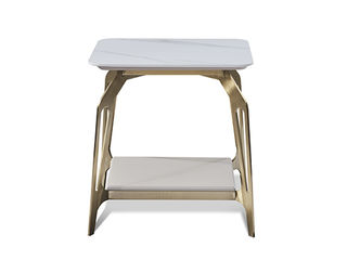 拜洛迪 轻奢 大理石底架+拉丝钛金不锈钢 白色 0.5米角几边几