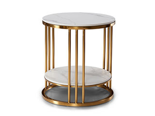 鹿屿 轻奢 天然石中花白+金属 0.4米圆形边几