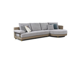 梵纳意简 极简 棉麻布+超纤皮+多层实木板+实木框架+高回弹海绵+不锈钢五金+羽绒 左转角沙发 Q9063.43米沙发