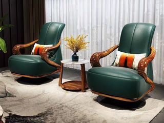 归鹊 新中式 松木内架+高回弹海绵+进口非洲喀麦隆乌金木+头层真皮 休闲椅1张