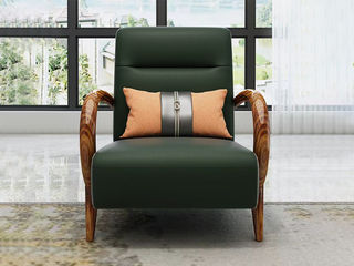 归鹊 新中式 松木内架+高回弹海绵+进口非洲喀麦隆乌金木+头层真皮 休闲椅1张