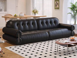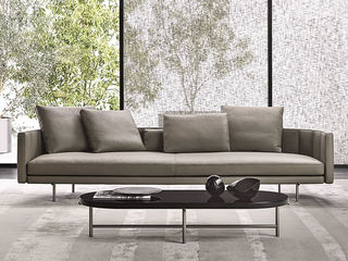 非凡工艺 现代简约 网红 中古风 接触面头层牛皮+框架落叶松木+多层实木夹板+金属脚 2.8米 大四人位 分体 沙发