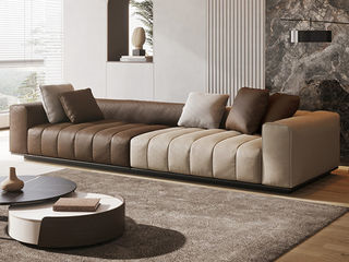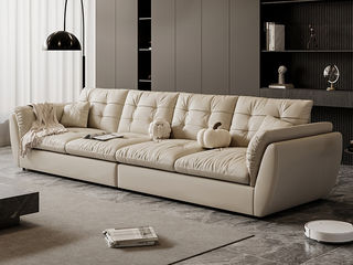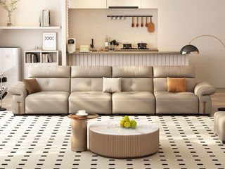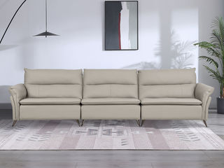 非凡工艺 现代简约 接触面头层牛皮+仿皮+多层实木板+实木内架+高回弹海绵+实木5分脚 卡其色 大四位 3.6米沙发