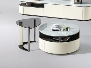 德卡图 现代简约 微晶石面+中纤板+马鞍皮+不锈钢 1.1米异形功能茶几