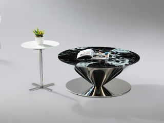 小红书系列 现代简约 桌面:灰色水纹玻璃脚架:大理石 0.9米圆茶几