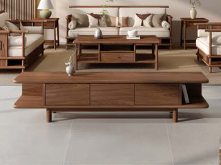 宋氏兰图 宋氏美学 红斑马木+实木多层板+岩板 1.2米茶几+边几