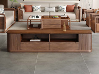 逸云庭居 宋氏美学 红斑马木+实木多层板 0.635米组合茶几