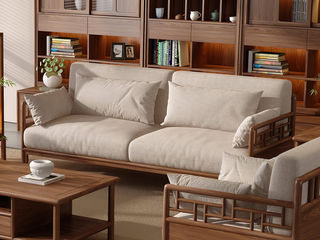 宋氏兰图 宋氏美学 红斑马木+实木多层+棉麻面料+高回弹海绵 2.1米沙发
