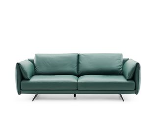 Milos米洛斯 极简 半真皮(A皮)+高回弹海绵+羽绒+实木松木内架+不锈钢拉丝脚 皮艺2.35米沙发 三人位