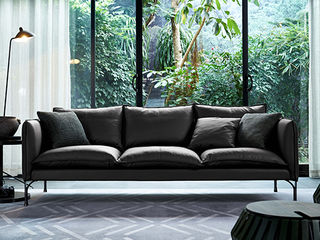Milos米洛斯 极简 半真皮(A皮)+高回弹海绵+羽绒+实木松木内架+碳素钢金属烤漆框架 皮艺2.32米沙发 三人位