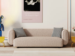 鹿屿 奶油风 羊羔绒H008- 系列(全)+实木框架+高回弹海绵+羊羔绒+五金脚 布艺沙发 三人位2.3米沙发 (含抱枕)