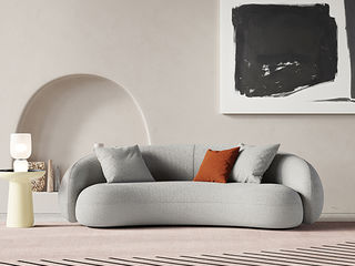 Minttu明途 极简 实木框架+高回弹海绵+羊羔绒+实木脚 网红豆荚直排三人位布艺弧形2.2米沙发(含抱枕)