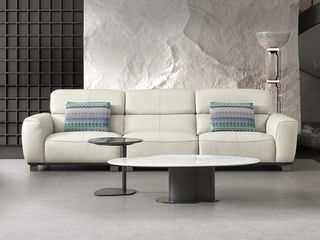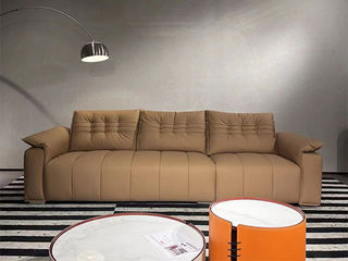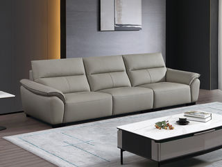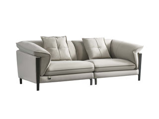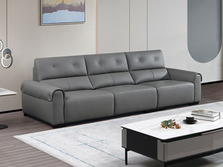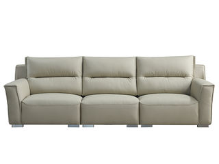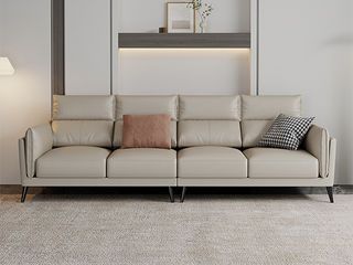 非凡工艺 现代简约 接触面头层黄牛皮+仿皮 E1级夹板+松木框架 无粉海绵 靠包、扶手包有赛羽绒+公仔棉填充 样色 直排2.4米三人位 皮艺沙发