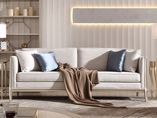 艾美侈 美式 俄罗斯桦木+棉麻布 珍珠银 三人位2.26米沙发