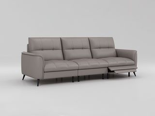 希奥 极简 40-45密度+接触面头层中厚压纹皮+金属脚+靠背可调节浅灰色皮艺3.25米沙发 3人位