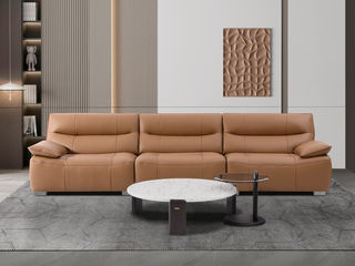 B系优选 现代简约 接触面头层黄牛皮+仿皮 E1级夹板+松木框架 无粉高密度海绵 座包高回弹海绵 扶手包、靠背为公仔棉填充 样色 直排2.9米大三人位 皮艺沙发