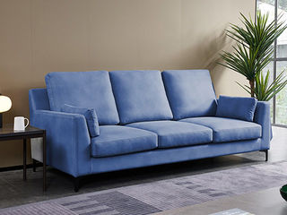 CBD家居 现代简约 拥有皮的质感+布的透气性科技布+东亚海绵+云杉木实木主框架 E1059星光蓝 三人位2.27米沙发【库存有限,卖完即止】