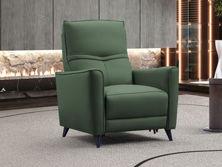 甄品家具 现代简约 接触面头层真皮+太空绵+高回弹海绵+合金功能钢架 绿青色 1R电 电动功能0.95米沙发